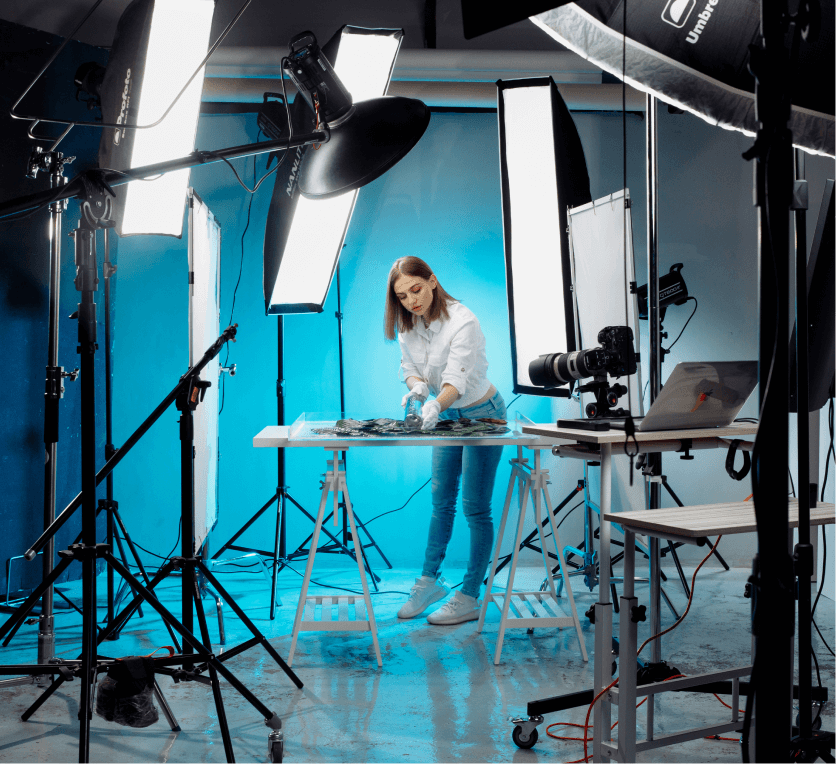 Our team of creative professionals will work collectively to bring our shoot concepts to life. We'll style each and every set, and play with lights and textures to suit the overall theme of your products and brand. It's a magical thing.